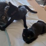 黒猫と黒スコティッシュを里親として、足長マンチカンと短足マンチカンをペットショップで一目惚れで家族にお迎えしました。ペットOKのアパートに引越し審査も猫ちゃんで通してもらっています。