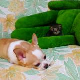 ラブラドールのクロ、チワワのプウ、A.コッカーのモコ。大中小の犬が3匹の中に、目も開いていない猫の赤ちゃんが仲間入り。 今まで経験したことの無い猫の立体的な動きといたずらに、犬も家族もてんやわんやの...