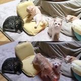 ラブラドールのクロ、チワワのプウ、A.コッカーのモコ。大中小の犬が3匹の中に、目も開いていない猫の赤ちゃんが仲間入り。 今まで経験したことの無い猫の立体的な動きといたずらに、犬も家族もてんやわんやの...