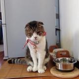 印刷屋で飼っている8歳のスコティッシュフォールド雄猫、名前は「福ちゃん」おとなしくあまり鳴かない、体重6?もあるデブ猫、じょろかいて座る世のもめずらしい猫である。耳がたれているのがいかにも愛嬌があって...