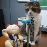 印刷屋で飼っている8歳のスコティッシュフォールド雄猫、名前は「福ちゃん」おとなしくあまり鳴かない、体重6?もあるデブ猫、じょろかいて座る世のもめずらしい猫である。耳がたれているのがいかにも愛嬌があって...