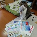 印刷屋で飼っている8歳のスコティッシュフォールド雄猫、名前は「福ちゃん」おとなしくあまり鳴かない、体重6?もあるデブ猫、じょろかいて座る世のもめずらしい猫である。耳がたれているのがいかにも愛嬌があって...