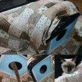 おはようございます🐱 大福さんの寝床進化しました…((((;゜Д゜))) 全体の体重はきませんが、部分的に血流止まる。 部分的に重いから毛布から降りてくれないか? {...