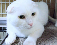 穏やかな全身まっ白の耳折れスコティッシュ